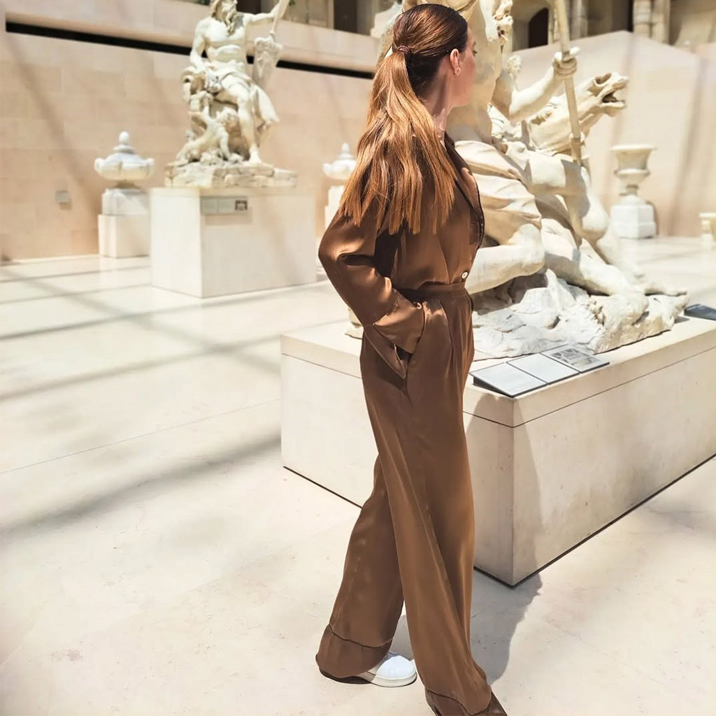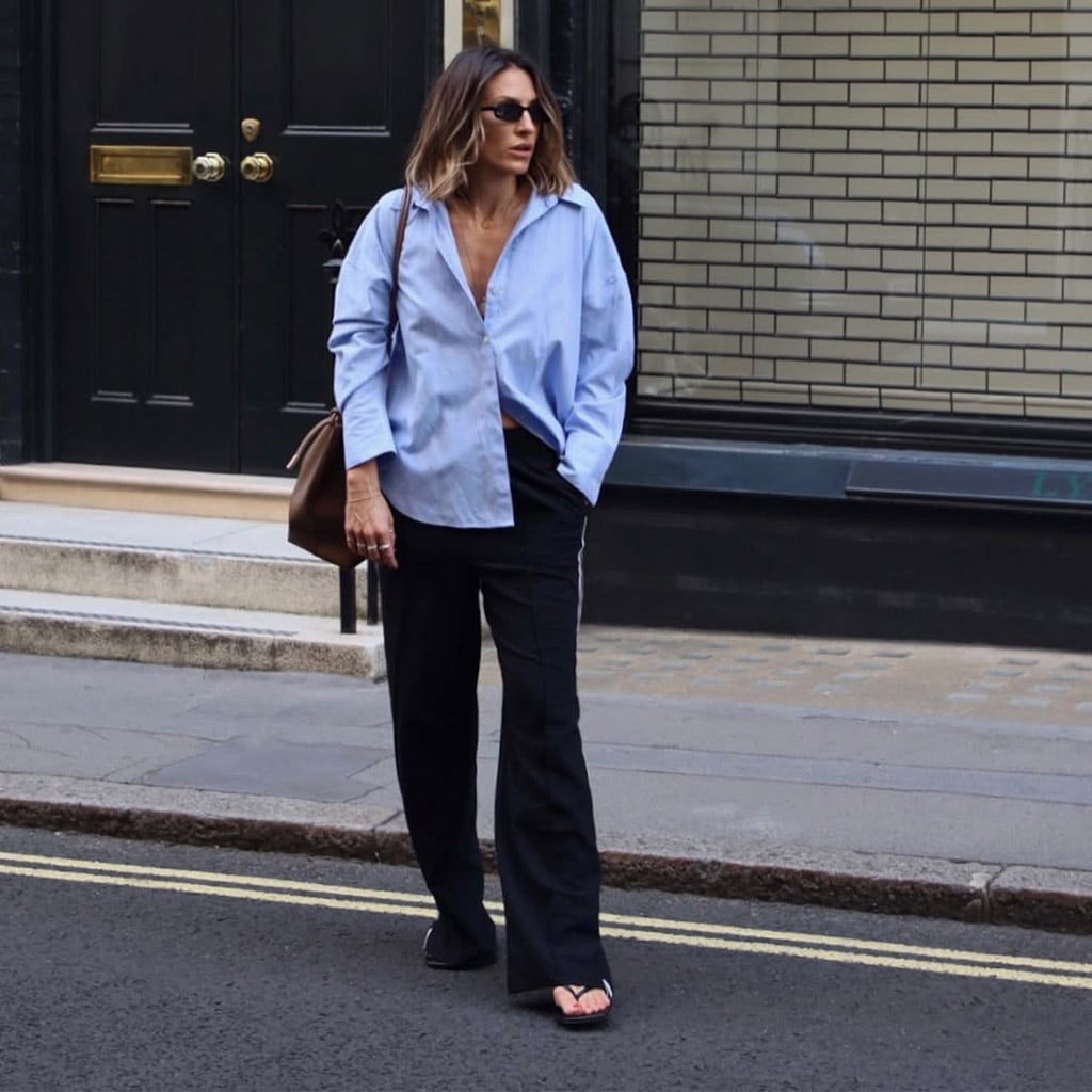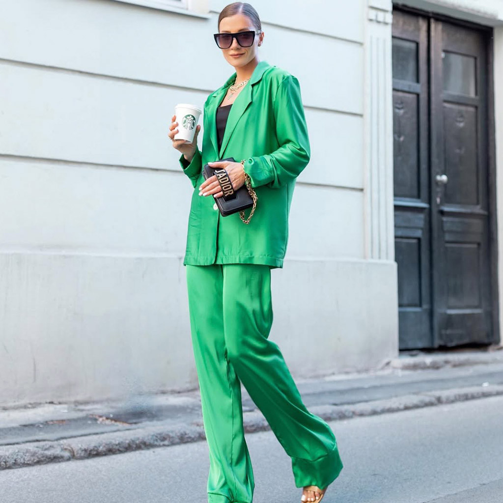 Піжамні костюми вже не такі популярні, як у минулих сезонах. Але якщо ти знайшла в його шафі красиву шовкову піжаму, яка тобі пасує, то чому б не прогулятися в ній вечірнім містом? З правильним взуттям і аксесуарами ти будеш виглядати як голлівудська знаменитість. 🤩