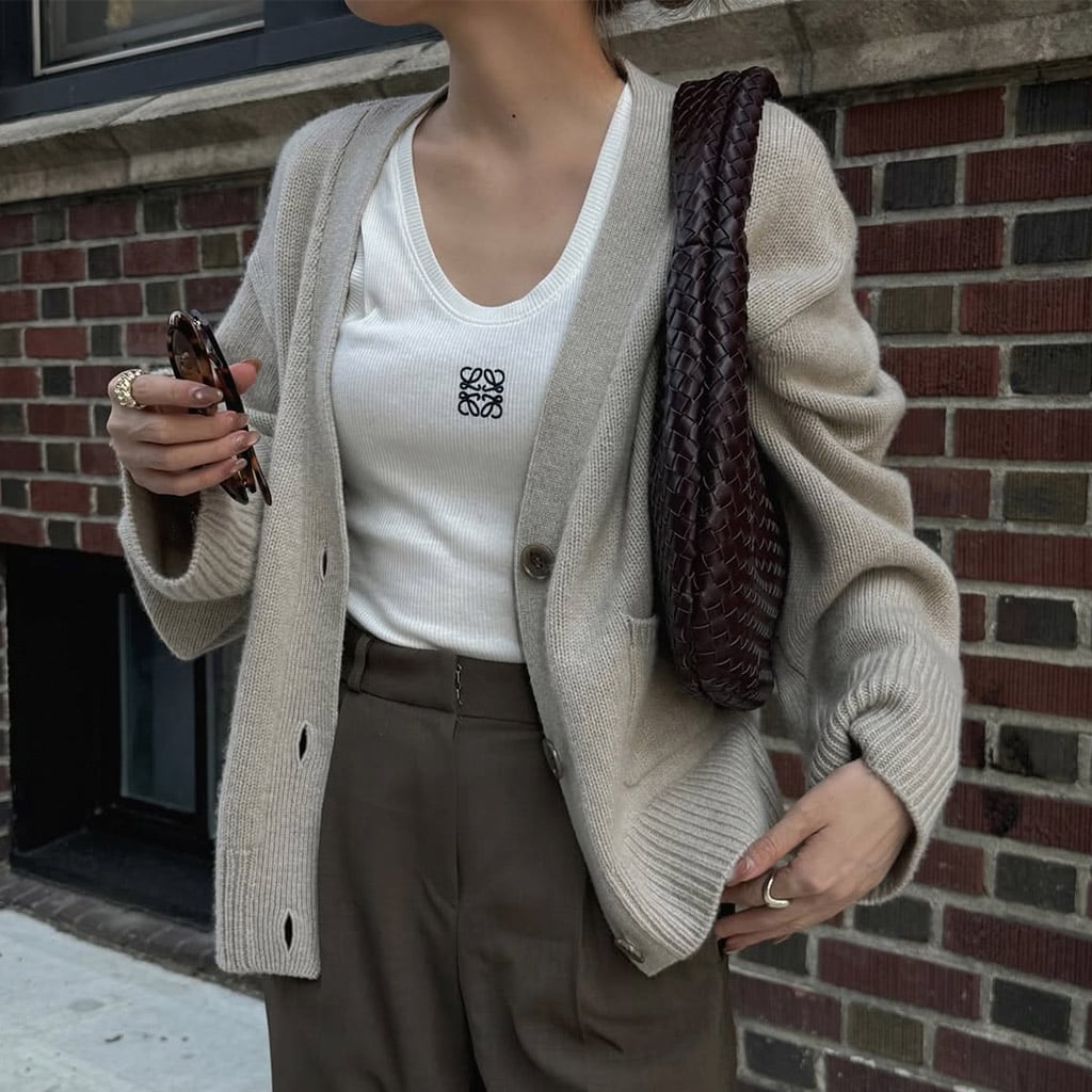 З чоловічим кардиганом нарозхрист носи базові футболки, прямі джинси та плісировані спідниці А-силуету. Такі образи особливо актуальні в тепле міжсезоння, коли тобі простіше одягатися в щось велике, комфортне, і при цьому не виглядати дивно.
