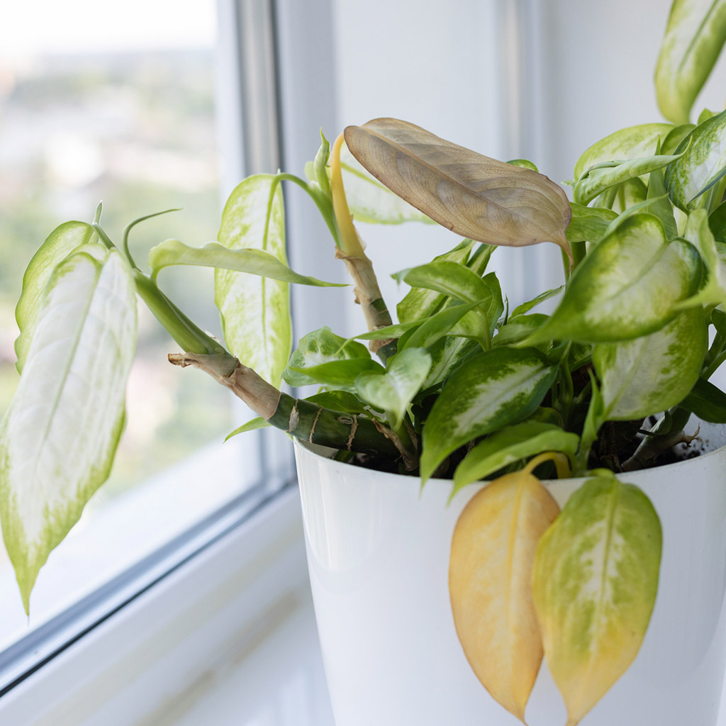 Вікно відкрилося, рослина “застудилася”, листя опало – класика. Звичайно, все відбувається не так прямолінійно, але суті це не змінює. Різкі коливання від “тепло-холодно”, “спекотно-прохолодно” викликають стрес, в’янення і навіть загибель. Відкриваючи вікна для провітрювання (особливо пізньої осені, ранньою весною і взимку), не забувай, що температурний комфорт потрібен не тільки тобі, але й рослинам.
