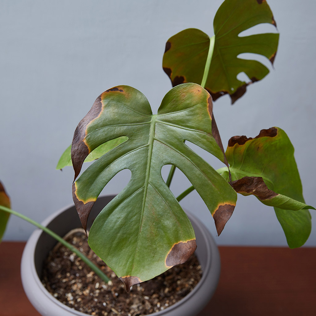 При тривалому впливі занадто потужного світла, особливо в поєднанні з жарою, ще відбувається руйнування хлоропластів. А це вже не просто стрес, а травма у вигляді фотопошкодження. Рослина згорає на сонці, як ти вперше на пляжі в спеку без тіні та SPF. Ось основні ознаки надлишку освітлення: