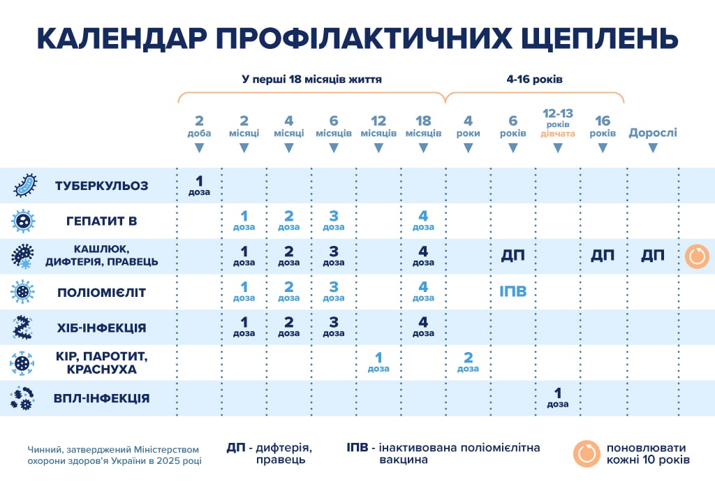 З січня 2026 року оновлено графік вакцинації. Тепер він виглядає так: