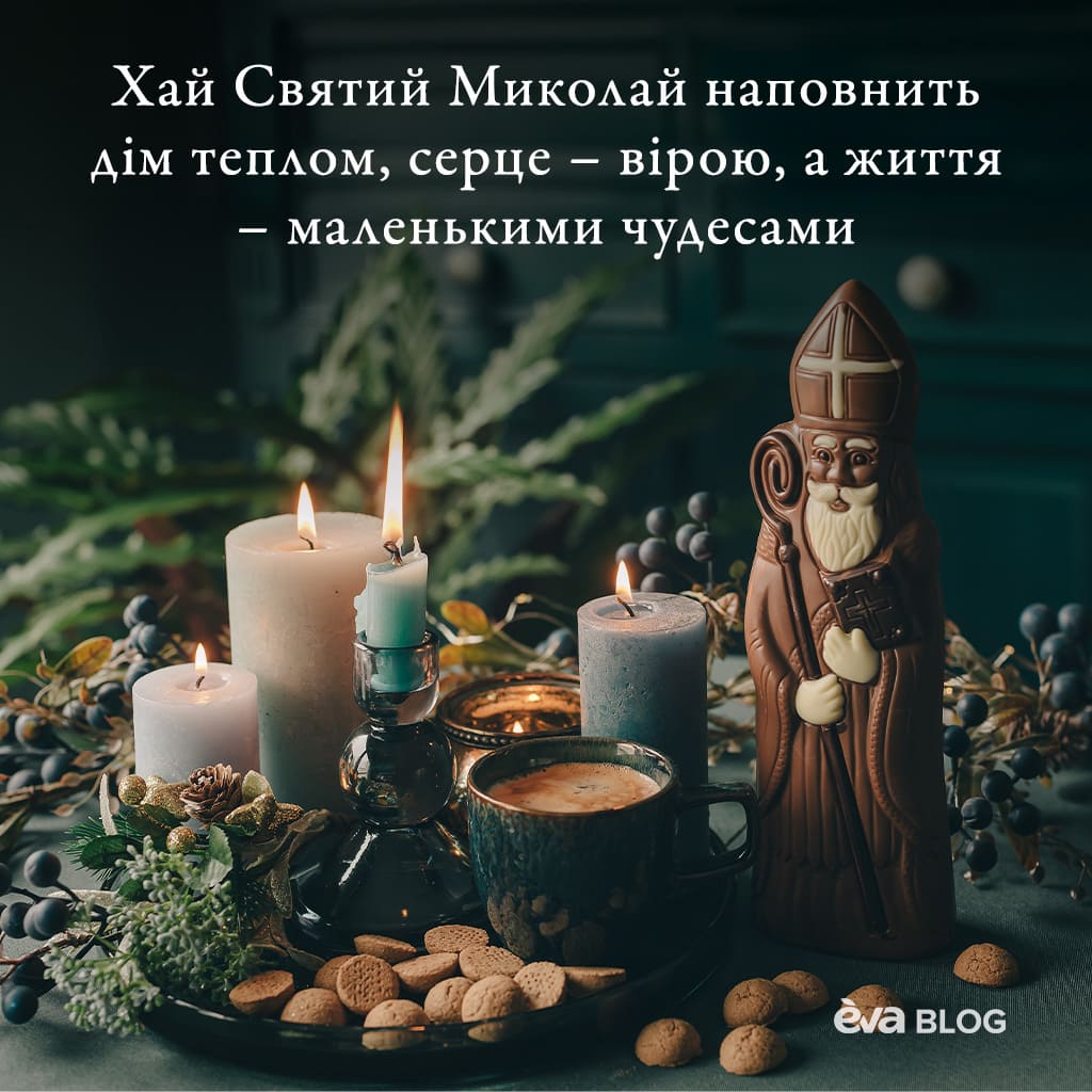 Нехай Святий Миколай принесе у твій дім мир, тепло та відчуття справжнього свята. Хай здійсняться найкращі мрії, навіть ті, що здавалися недосяжними. Бажаю, щоб кожен день дарував тобі радість, натхнення та щиру віру в добро.