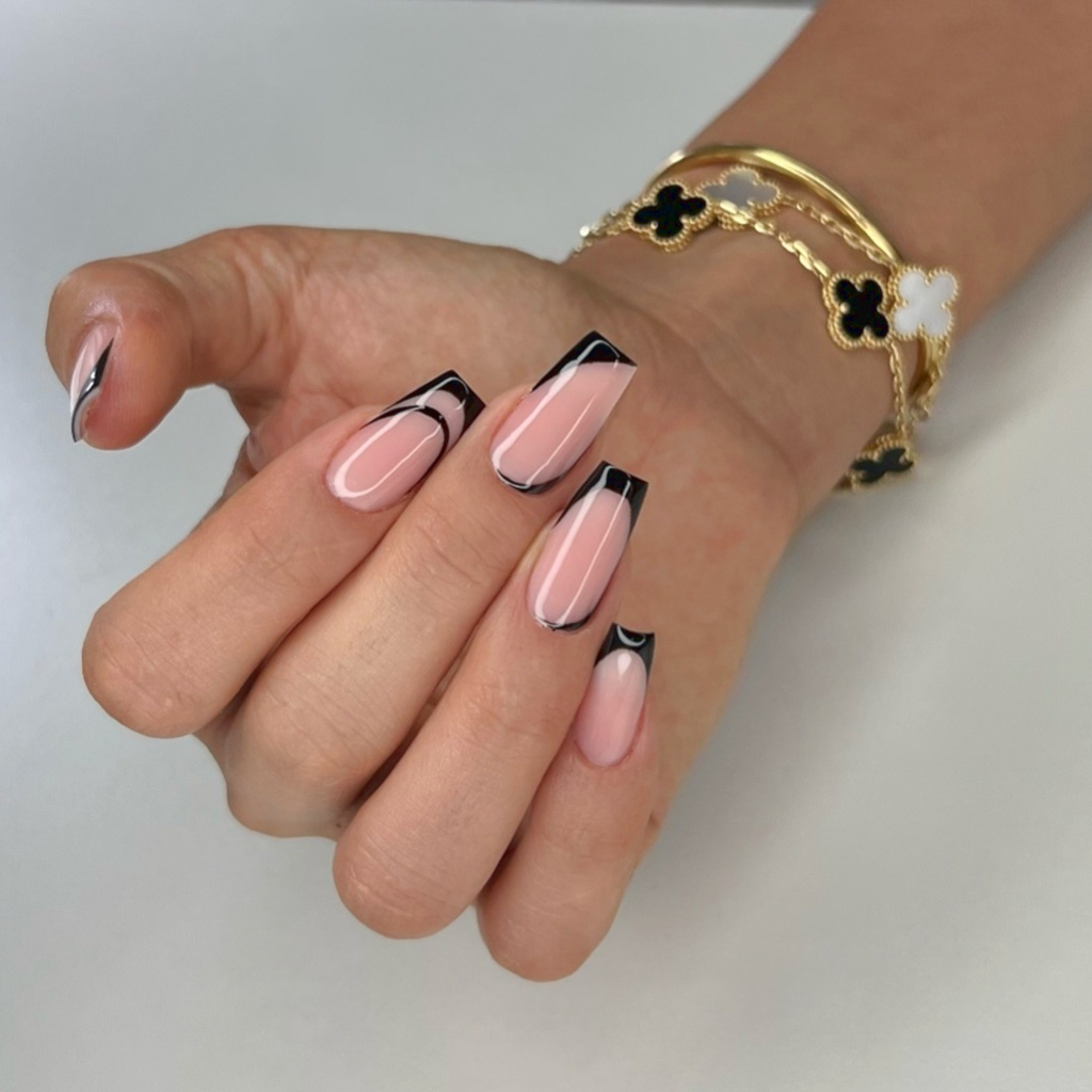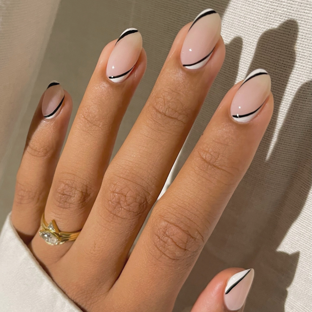 Окремо варто виділити трендовий мікрофренч. За рахунок дуже тонких ліній (і часто – контрастних відтінків), цей дизайн став нереально модним і популярним. А ще, на відміну від класики, він має дуже крутий вигляд на коротких нігтях.