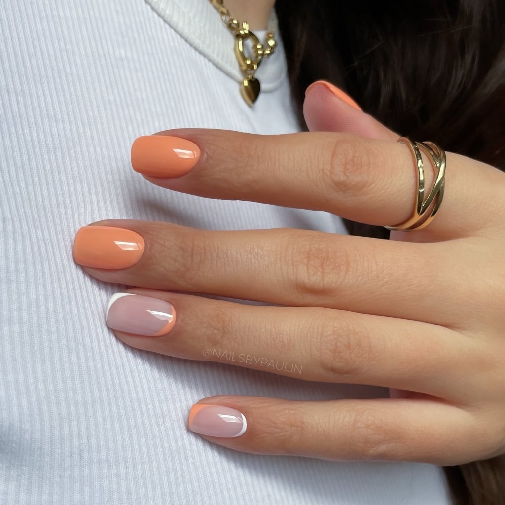 Куди оригінальніший вигляд має «скошений» френч, діагональний і різноколірний з новим відтінком на кожному пальчику. Втім, ці ідеї можна комбінувати з однотонним покриттям або використовувати різну техніку в одному манікюрі.