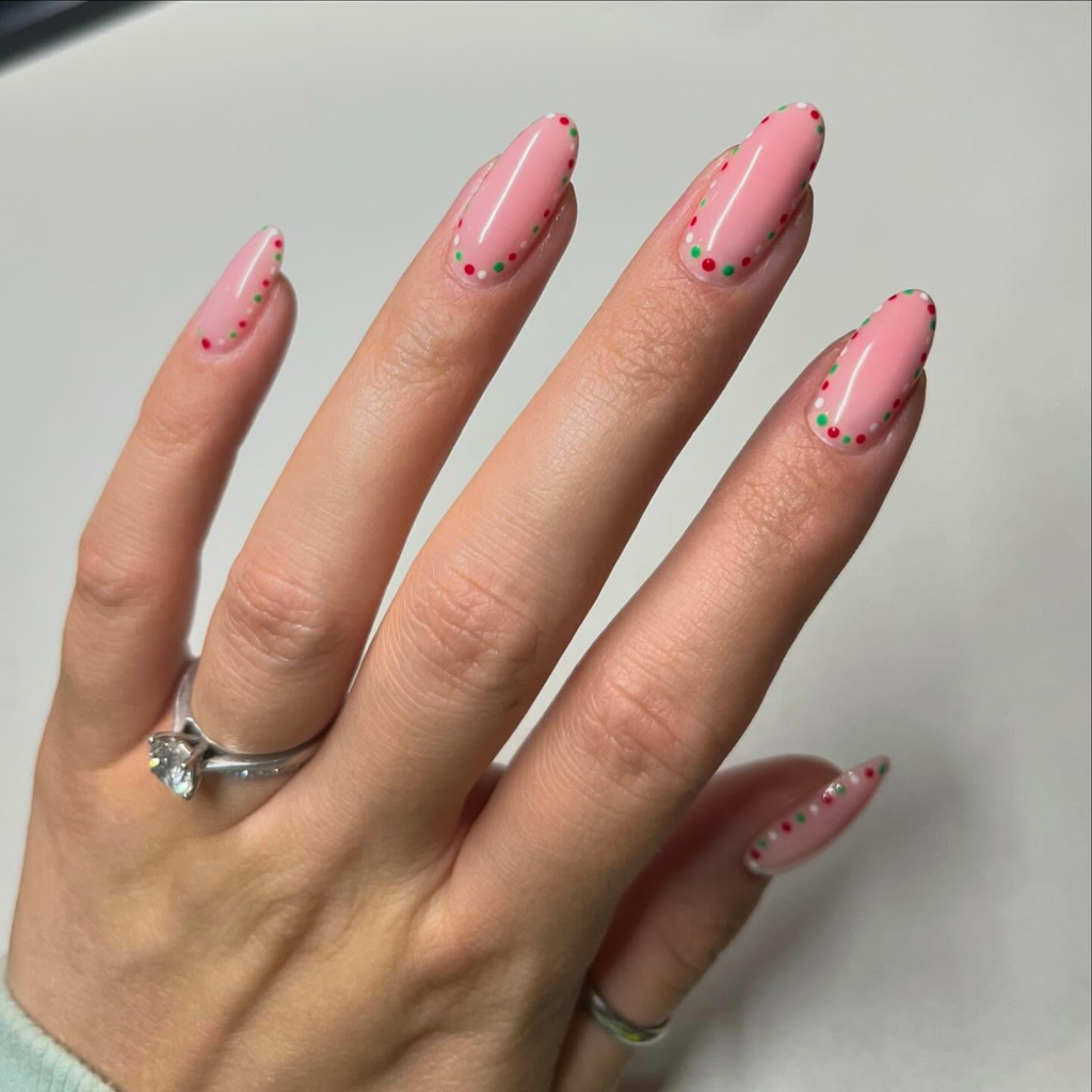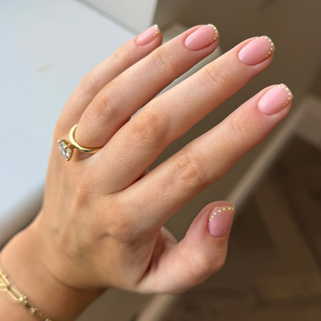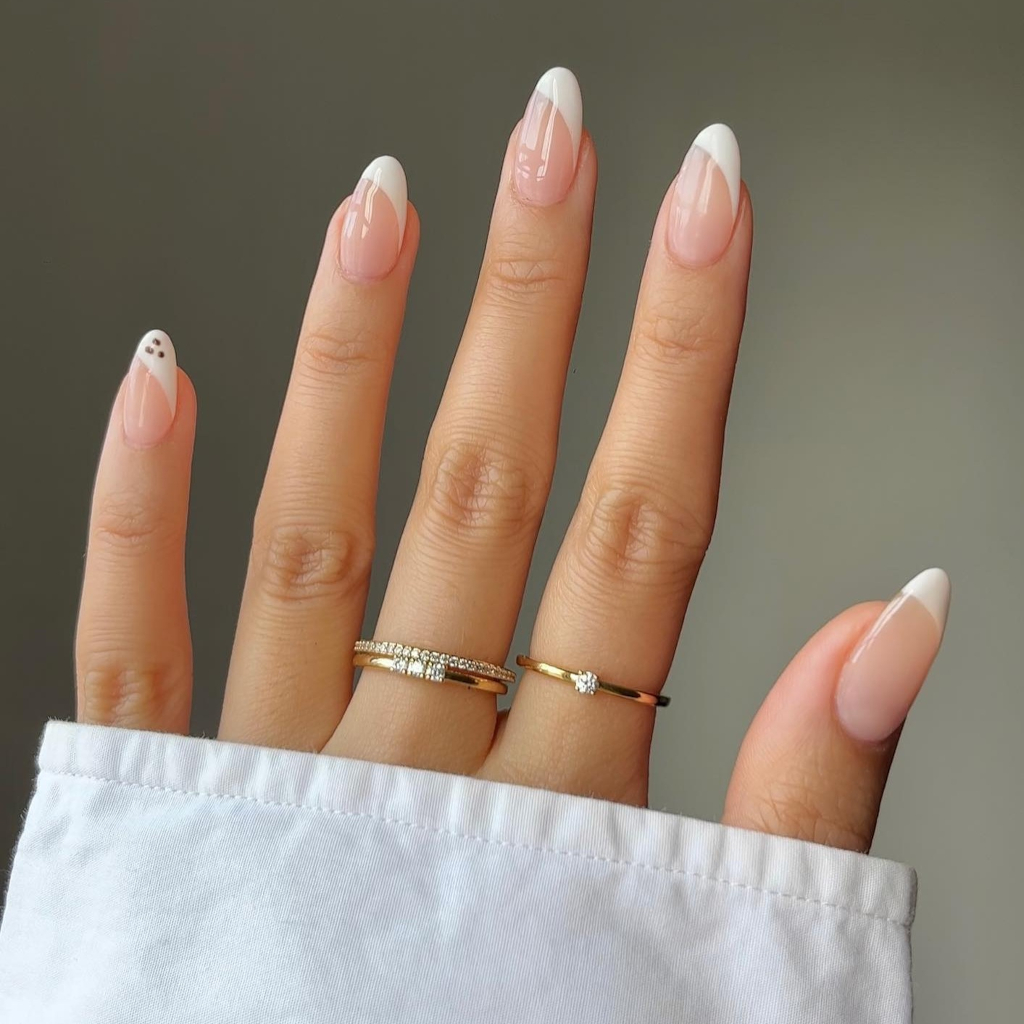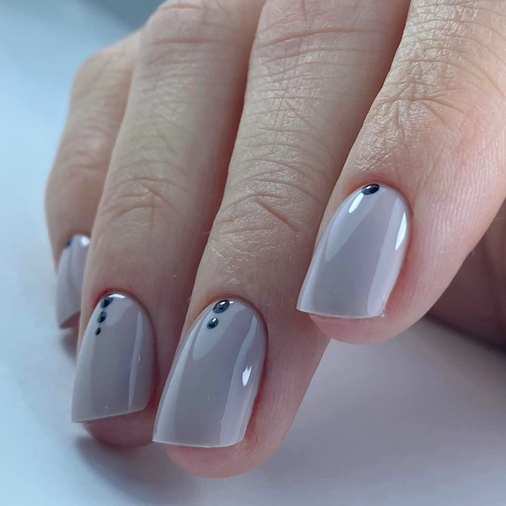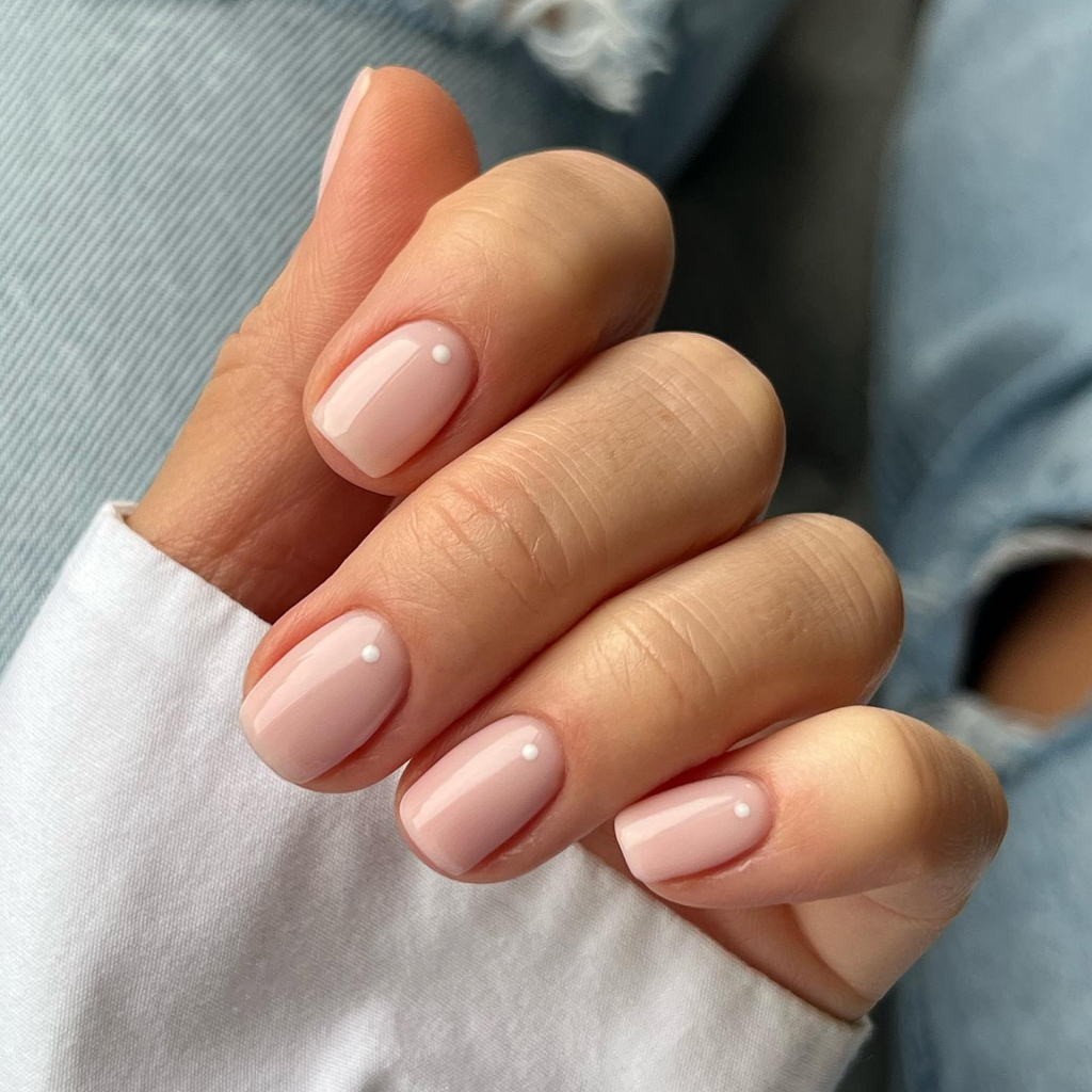 Окремо варто виділити «точкові» дизайни. Ця «фігура» настільки універсальна, що має крутий вигляд і соло по центру або біля основи нігтика, так і в різних формах — від повної окантовки до імітації френча. Просто, легко і ніжно.