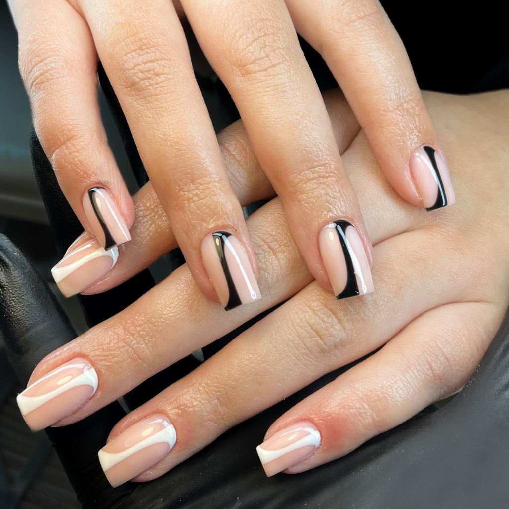 Віддаєш перевагу чіткості та графіці? Тоді геометричні дизайни — твій вибір. Лінії, смуги, фігури різних форм (від класичних до фантазійних) мають чудовий вигляд і контрастними, і в більш ніжних тонах. У першому випадку отримуємо трохи бунтарський манікюр у своєрідному рок-стилі, у другому — легкий і повсякденний варіант.