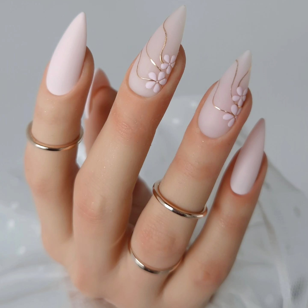 Витончені серця, гілочки та рослинні малюнки підкреслюють твою м’якість і жіночність і виглядають дуже мило на будь-якій довжині. Особливо «дорого» виглядає такий дизайн у розкішній нюдовій палітрі.