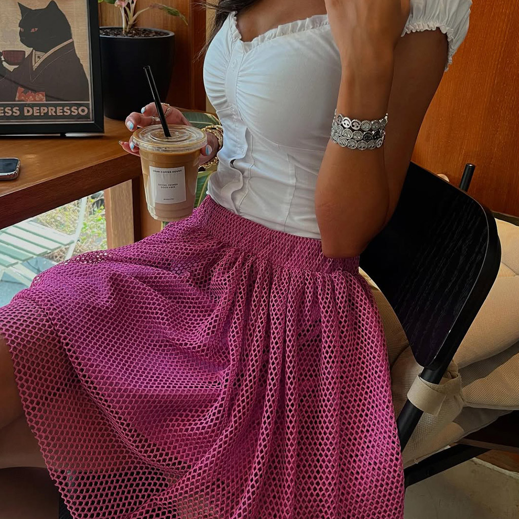 - У спекотні літні дні віддавай перевагу спідницям яскравих кольорів або класичного білого. Комбінуй їх з легкими майками, кроп-топами або лляними сорочками. З босоніжками на плоскій підошві або еспадрильями твій літній образ буде неперевершеним.