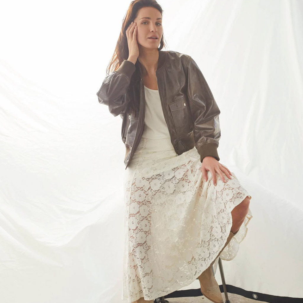 - Восени та навесні легка мереживна спідниця пастельних відтінків легко поєднується з джинсовою курткою, кардиганом або светром. Взуй світлі кеди або балетки — і ось твій свіжий та повітряний весняний образ готовий.