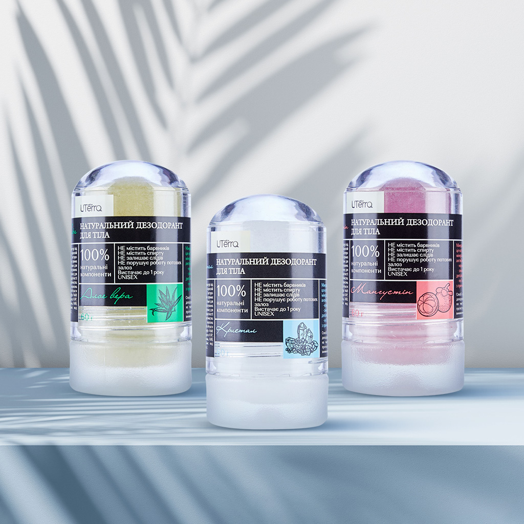 - Не блокують потовиділення, на відміну від антиперспірантів. Виділення поту — природний процес, за допомогою якого наше тіло бореться з перегрівом. Сам по собі піт не має жодного запаху — його викликають бактерії, що живуть на нашій шкірі. Саме на їхнє усунення і працює натуральний дезодорант у вигляді кристалу: він не блокує піт, зате може бути ефективнішим у боротьбі з неприємним запахом.