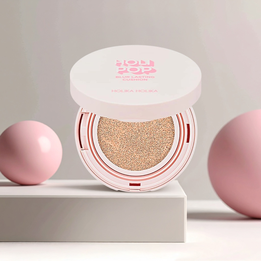 Формула Holi Pop Blur Lasting Cushion обогащена экстрактами белой лилии, вишневого цвета, розы, персика и лотоса, которые увлажняют, помогают коже справляться с негативными факторами окружающей среды, смягчают и тонизируют. Конечно, не забыли в нем и про максимальную защиту от УФ-лучей. Текстура у кушона легкая, но перекрывает и матирует он хорошо и при этом не выглядит на лице маской.