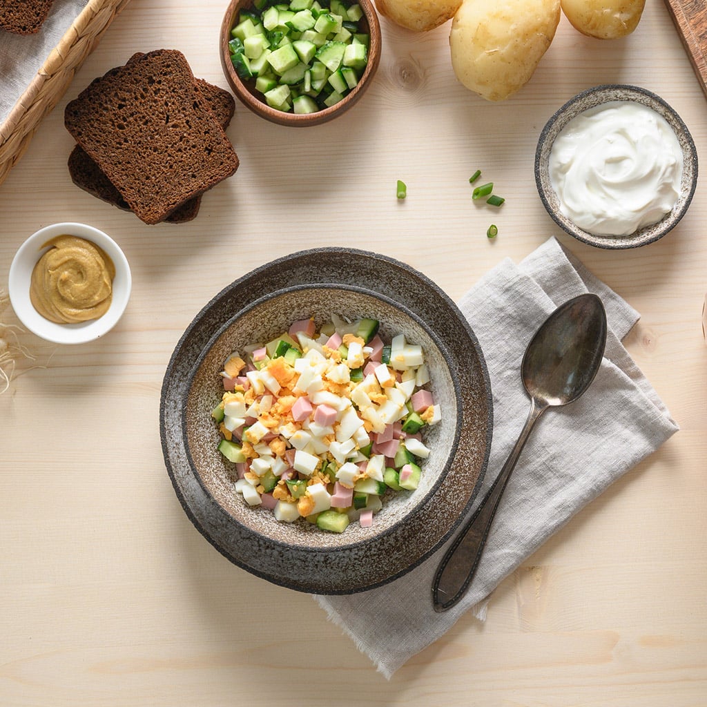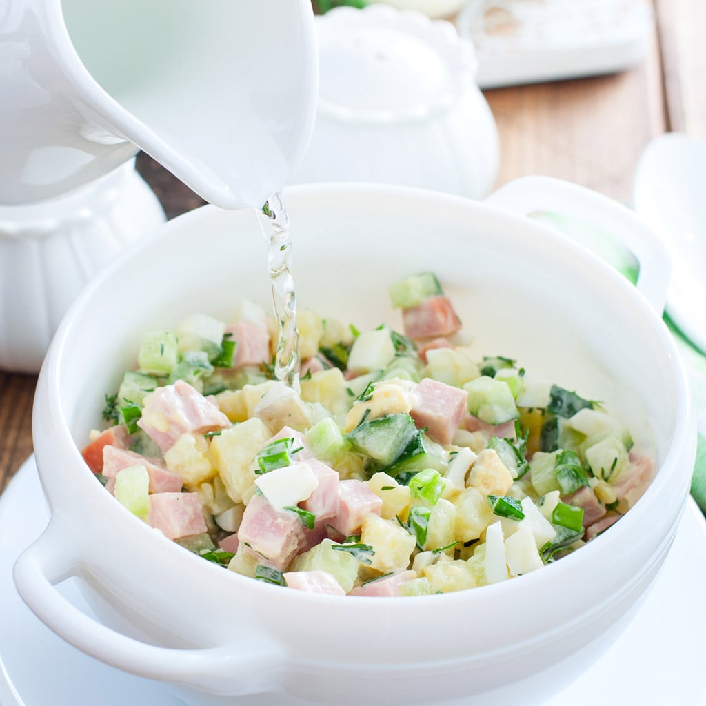 Не спорю, существует идеальные сочетания, но если ты любишь эксперименты – вперед, не останавливай себя и попробуй все. Возьми те компоненты, которые нравятся, только “БАЗУ” не меняй (яйца, картошка, огурец), и дополни блюдо. Например, в рецепте отсутствует редис, но ты его любишь – добавляй, лишним он не будет. Или, наоборот, ты его не любишь – смело убирай.