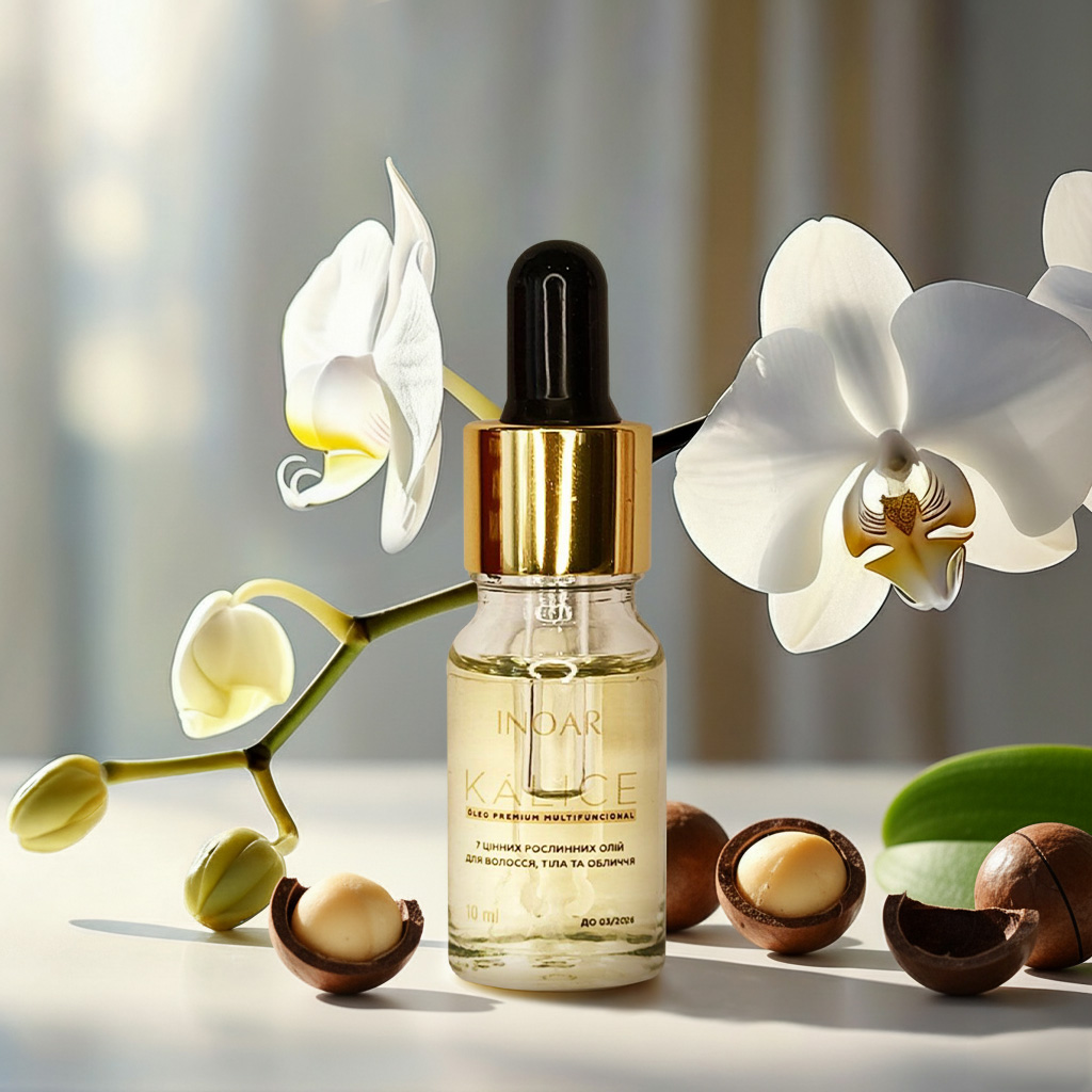 Ищешь многофункциональный продукт, который применим для лица, тела и волос, а еще может использоваться как соло, так в дополнение к другой косметике? Выбирай Kalice Oil от бразильского бьюти-бренда Inoar. Средство объединяет 7 питающих растительных масел (аргановое, макадамии, мирры, миндаля, жасмина, ожона и розмарина) и при этом имеет легкую текстуру. Благодаря продуманной формуле с антиоксидантами продукт питает, увлажняет, восстанавливает и придает гладкость коже и волосам, даря потрясающий аромат и ухоженный вид.