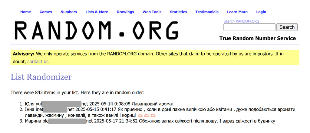 Внимание! Так как ароматы разные, они будут разыграны следующим образом: