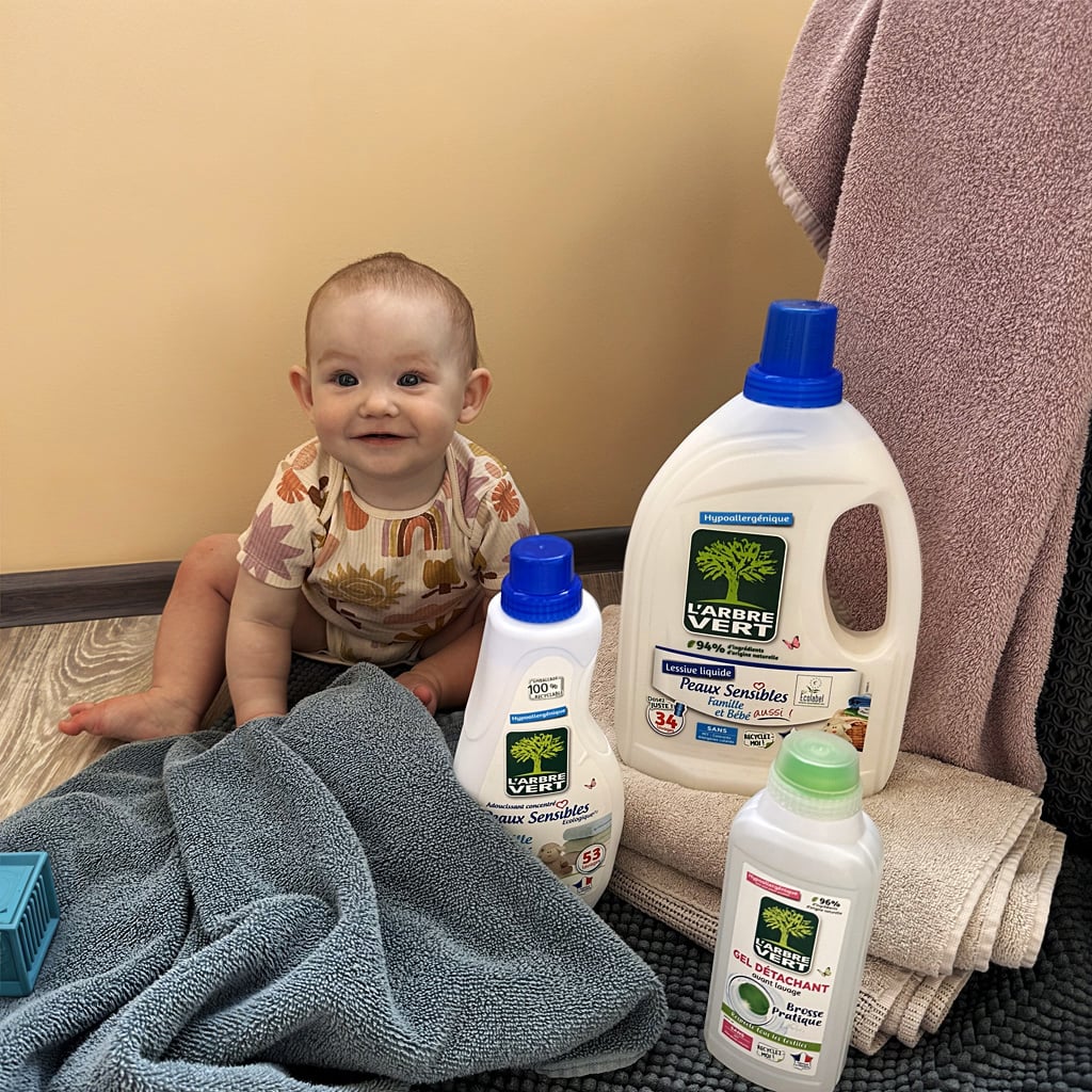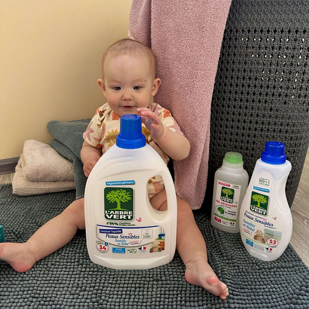 Идеально чистое белье и отсутствие малейших признаков аллергии на теле – это все заслуга жидкого средства для стирки L’Arbre Vert Sensitive. Благодаря гипоаллергенной формуле оно подходит даже для самой чувствительной кожи и конечно же для стирки детского белья👶.