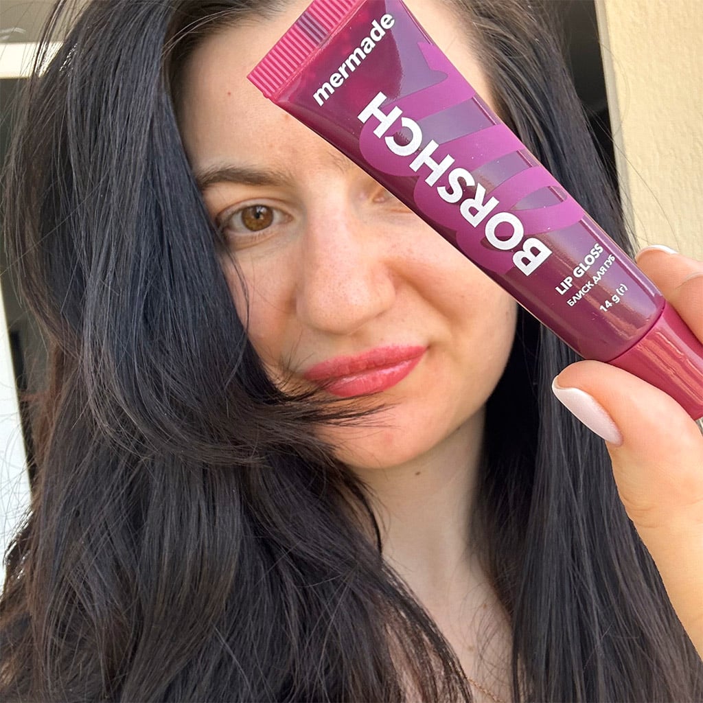 Мои коллеги уже проспойлерили, чем пахнет блеск для губ с провокационным названием “Borshch”, поэтому я не буду особенно на этом останавливаться. 🤭 Но запах у него действительно вишневый, ванильный и немного кондитерский. Очень приятный, но совсем не про символ украинской кухни.