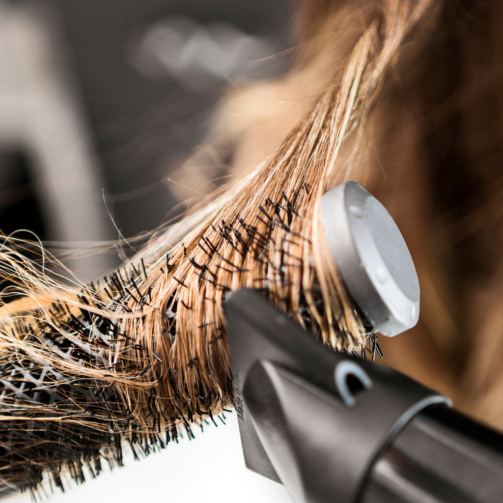 Фен, плойка, утюжок – это плохо для окрашенных волос. Если ты хочешь сделать укладку, то используй специальные термозащитные средства, которые создают барьер между волоском и теплом, снижая риск повреждения. Ну, и ты понимаешь, что горячий воздух мы не используем. Выставляй максимально щадящую, спокойную температуру, которая заботливо сушит волосы, а не жжет их.