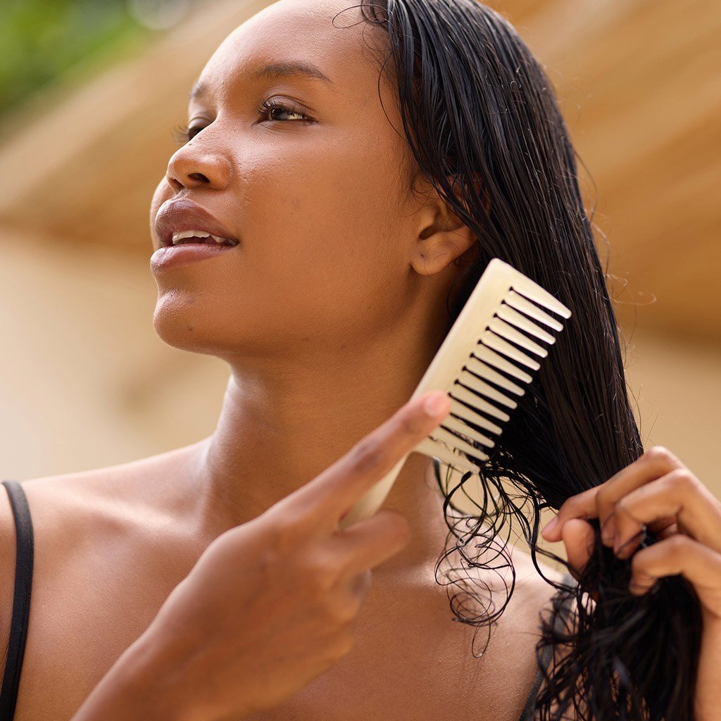 - Пантенол и аминокислоты – восстановление структуры волос после негативного воздействия солнечных лучей.