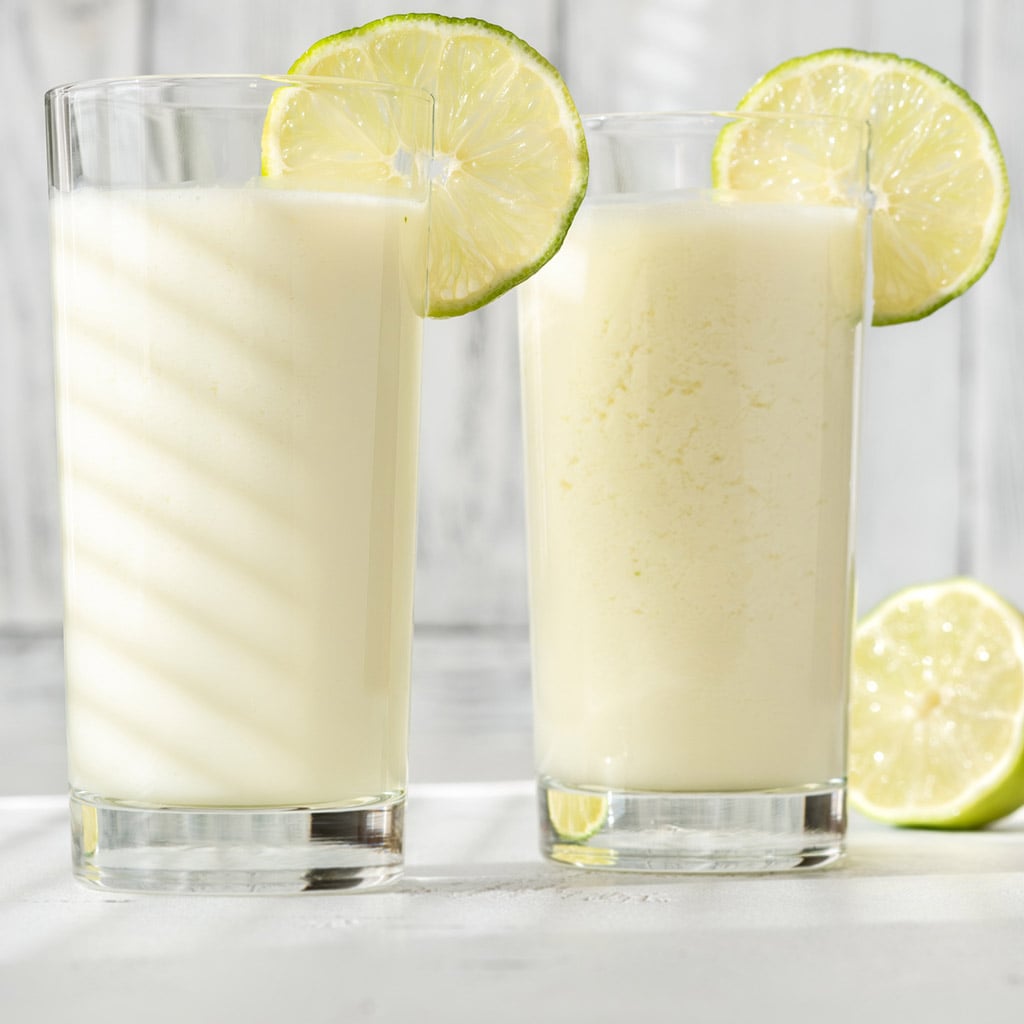 - Украшаем напиток ломтиком лимона и веточкой мяты, берем трубочку — и наслаждаемся потрясающим матча-лимонадом!