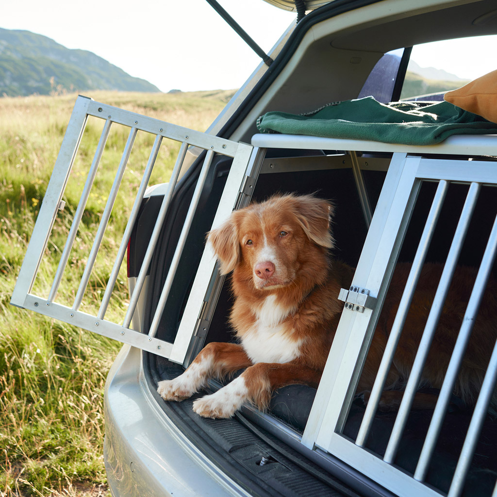 - Решетки или барьеры в салон – это необходимая вещица для больших песиков, которые забронировали себе место в багажнике. В универсалах и внедорожниках достаточно места, чтобы удобно разместиться даже настоящим гигантам. Металлические или сетчатые перегородки помогут четко обозначить – ты сидишь тут, твоя любопытная морда в салоне не появляется ни под каким предлогом.