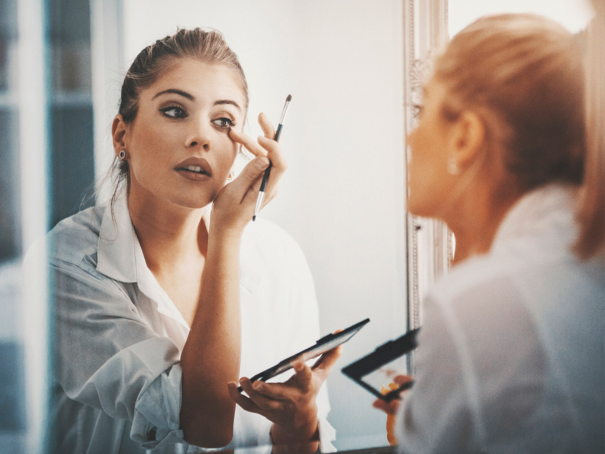 Есть два решения: первое — сначала сделать макияж глаз, потом смахнуть тени пушистой кистью и нанести консилер и тон. Второе — перед нанесением теней обильно нанести пудру в зону под глазами (бейкинг), а потом смахнуть кистью лишнюю пудру и тени, которые осыпались.