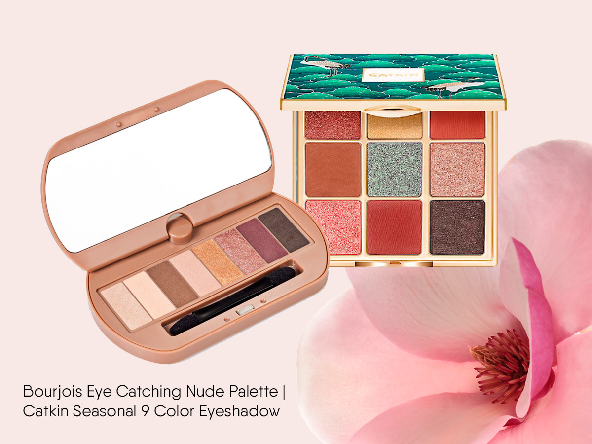 - нюдовая палетка Bourjois Eye Catching — в ней есть и матовые, и глиттерные тени, которые помогут создать яркий макияж;