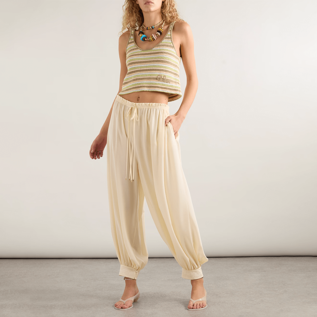 Для поездки в офис или для вечернего образа дополни шаровары жакетом, блузой (можно в стиле бохо для идеального сочетания), топом с открытыми плечами.