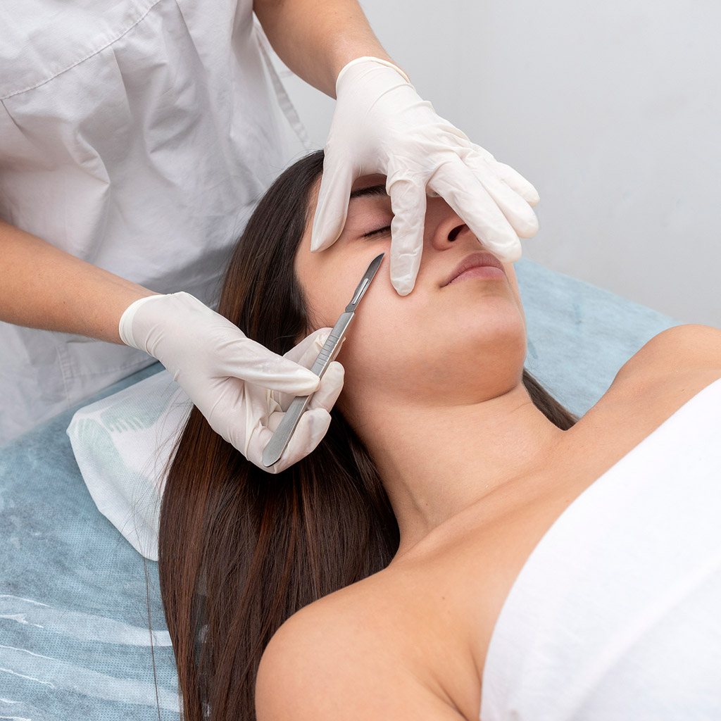 Если ты не косметолог, то лучше отправляйся в косметологический кабинет и доверь свое лицо профессиональным рукам. Специалист понимает алгоритм подготовки кожи, проведения процедуры и реабилитации. Использует специальный инструмент, который не найти в простом магазине. Знает угол, под которым нужно держать скальпель для получения желаемого результата без царапин и других травм. Придерживается всех необходимых норм безопасности и санитарии.