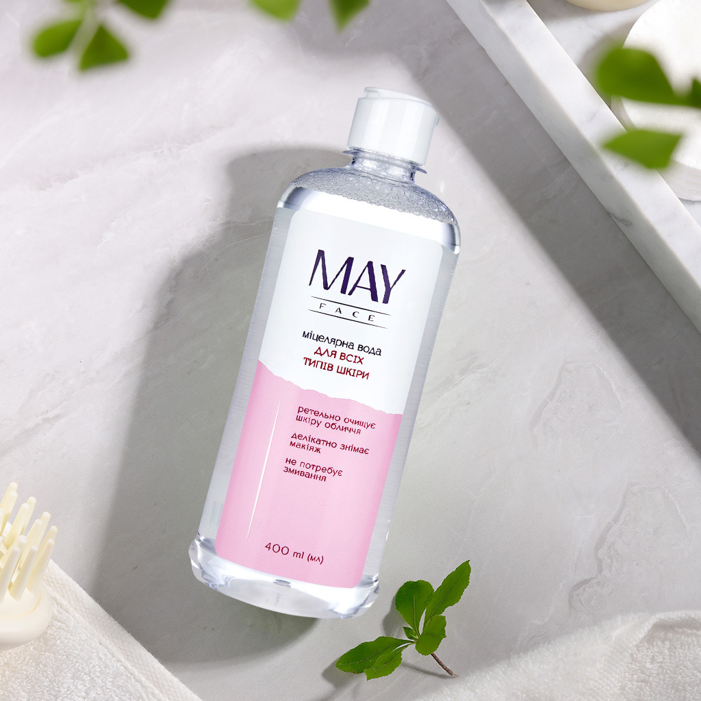 Мицеллярная вода MAY face быстро и качественно устраняет загрязнения, в том числе и SPF крем, не оставляя им шанса испортить твою идеальную кожу. В составе есть экстракты авокадо и алоэ вера. Натуральные компоненты создали идеальный тандем, который активно работает над увлажнением, питанием, улучшением эластичности кожи и устранением мелких морщин.
