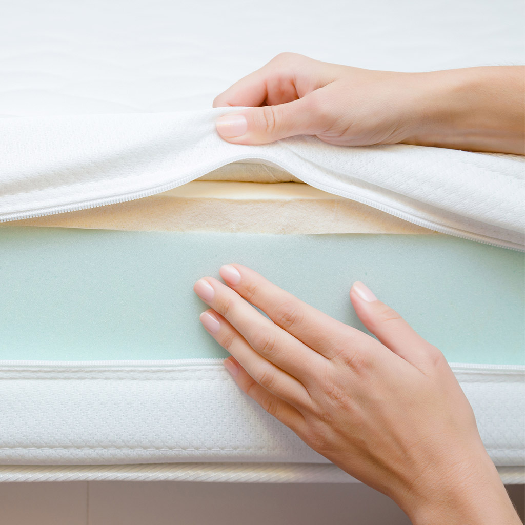 Верхний и нижний слой матраса может состоять из комбинации материалов для лучшей амортизации, степени поддержки, мягкости или плотности, распределения тепла и т.д.