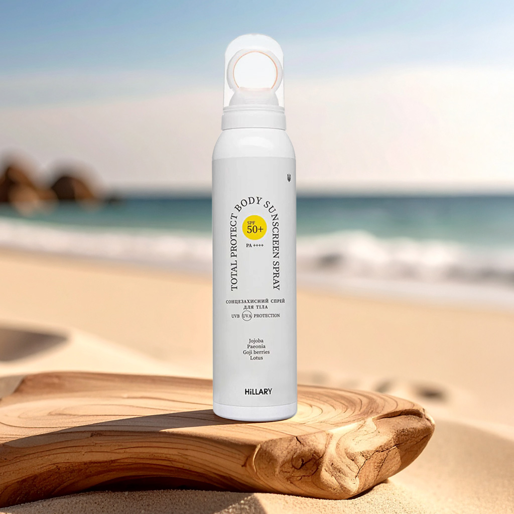 Зверни увагу на ще один гідний сонцезахисний засіб – Hillary Total Protect Body. Цей спрей для тіла має ультралегку текстуру, швидко вбирається і зберігає свою ефективність навіть при контакті з водою. У його формулі мікс хімічних і фізичних фільтрів, що забезпечують комплексний і стійкий захист від УФ-випромінювання.