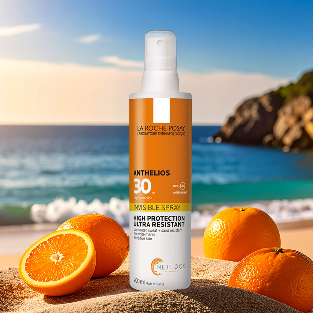 У французького бренду дерматокосметики La Roche-Posay теж є гідний SPF-спрей, який можна наносити на обличчя і тіло. Знайомся – Anthelios Invisible Spray SPF 30. Засіб забезпечує комфортне і безпечне перебування на сонці, навіть в умовах підвищеної вологості, контакту з водою або піском.