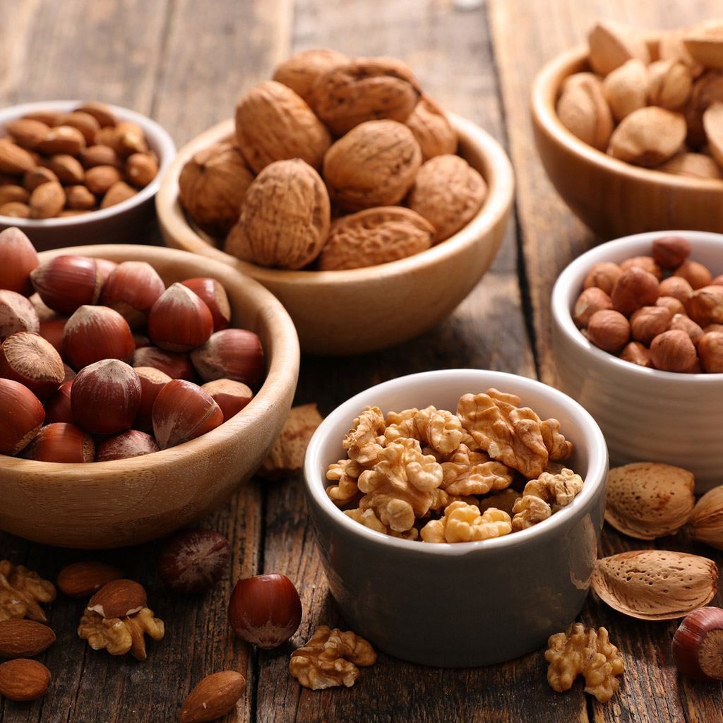 Волоські горішки отримали нижчий вміст мінералів. Проте з горішка ти отримаєш і калій, і залізо, і магній, і фосфор, і калій. А ще, ядра волоського горіха містять флавоніди й фенольну кислоту. Саме ці сполуки вважаються найпотужнішими антиоксидантами, що захищають організм від негативного впливу вільних радикалів.
