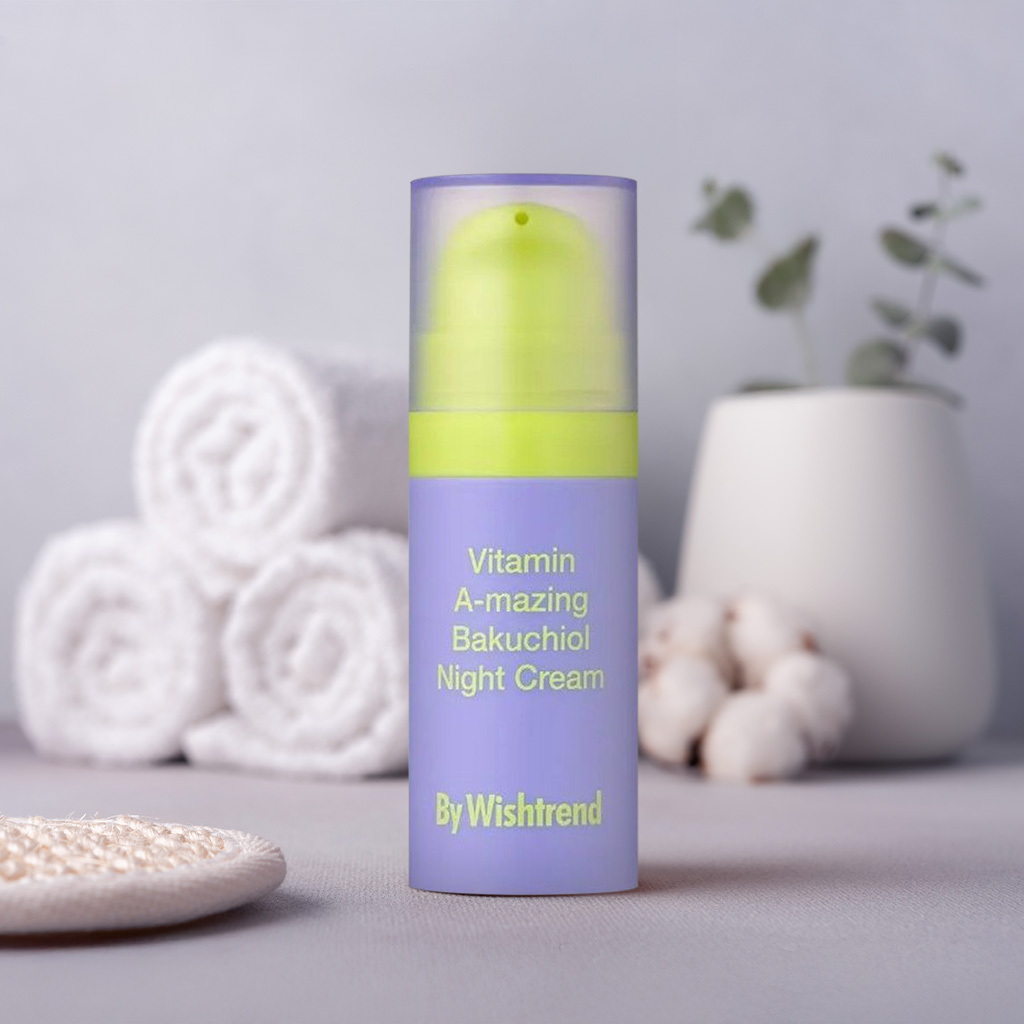 Звичайно ж, не забуваємо про вечірню рутину. І тут чудовим засобом, який боротиметься зі зморшками, підвищуватиме синтез колагену, водночас працюватиме з висипаннями та слідами від них, є ретинол і його рослинний аналог бакучіол. Ці два компоненти вже знаходяться в нічному кремі By Wishtrend Vitamin A-mazing Bakuchiol Night Cream. З ним твоя шкіра помітно перетвориться.