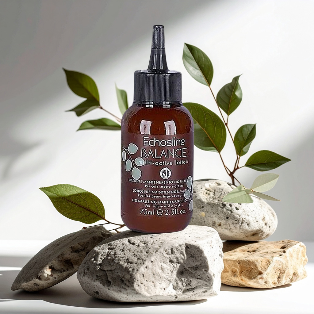 Профіль багатофункціонального засобу Echosline Balance Multi-Active Lotion — боротьба з жирністю, свербінням і лупою. Завдяки екстракту імбиру, винограду, бісабололу і ментолу, засіб ефективно очищає, освіжає і допомагає відновити природний баланс. А піроктон оламін, як один з найдієвіших компонентів проти лупи, лікує шкіру голови та бореться з першопричиною її появи.
