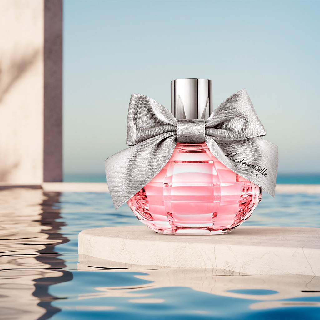 Ненав’язливий Azzaro Mademoiselle підкорить шанувальниць жіночних фруктово-квіткових композицій. Піраміда аромату складається з білих квітів (жасмин, а також апельсиновий і мандариновий колір), персика, ірису і півонії, а також м’яких деревних нот. Туалетна вода з грайливим бантиком на флаконі – те, що потрібно для теплої погоди й будь-якого приводу, хоч це вечірня прогулянка, хоч це робота в офісі.
