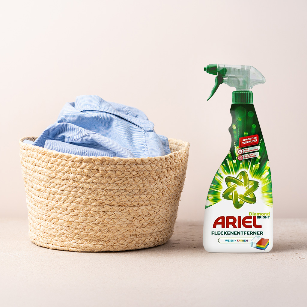 Для швидкого та ефективного видалення плям від поту (і не тільки від них) використовуй спрей-плямовивідник ARIEL Diamond Bright. Він підходить для світлих і кольорових речей, справляється на ура як зі свіжими забрудненнями, так і з застарілими. У складі відсутній хлор, тому плямовивідник можна використовувати для делікатних тканин, а також як доповнення до прального порошку або для замочування складних плям. Він зберігає яскравість речей, має антибактеріальні властивості та залишає приємний свіжий аромат. Те що треба!