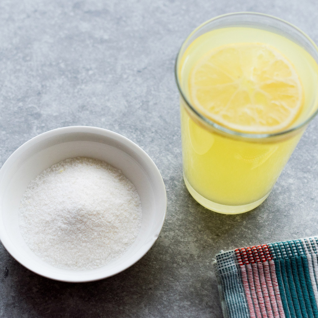 Лимонна кислота чудово усуває плями (свіжі) та освіжає тканину. Тож тобі знадобиться сік одного лимона. Вичави його на забруднення і залиш подіяти приблизно на хвилин десять. Після чого одяг потрібно гарненько прополоскати у воді, а ще краще – відправити в пральну машинку.