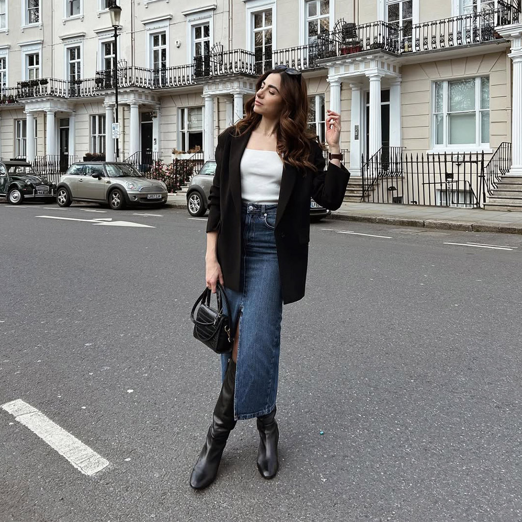 Якщо твій гардероб — це капсула в базових відтінках, то джинсова спідниця підійде сюди якнайкраще. Дивись, як можна доповнити нею навіть найстриманіші та найелегантніші образи:
