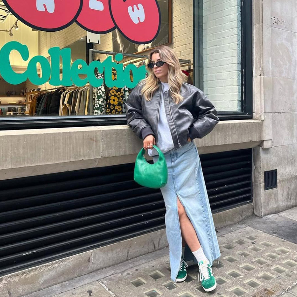 Щодо поєднань все прозаїчно: базова футболка, шкіряна куртка, кросівки, — і ти в центрі уваги. Повторюся, що комфортні образи найпопулярніші, тож цього сезону можна не винаходити велосипед, а вільно комбінувати спідницю денім з будь-якими речами з гардероба. Якщо ти відчуєш себе трохи «ретро», то це навіть добре, тому що мода на дев’яності все ще відлунює у всіх відомих стилях.