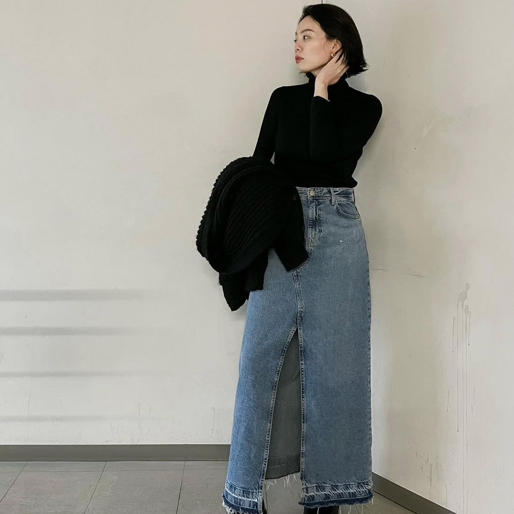 Здавалося б, що в діловому стилі спідниці денім не зовсім доречні, але зверни увагу на те, як грамотно й органічно можна поєднувати їх навіть із доволі консервативним одягом. Наведу як приклад кілька вдалих варіантів: